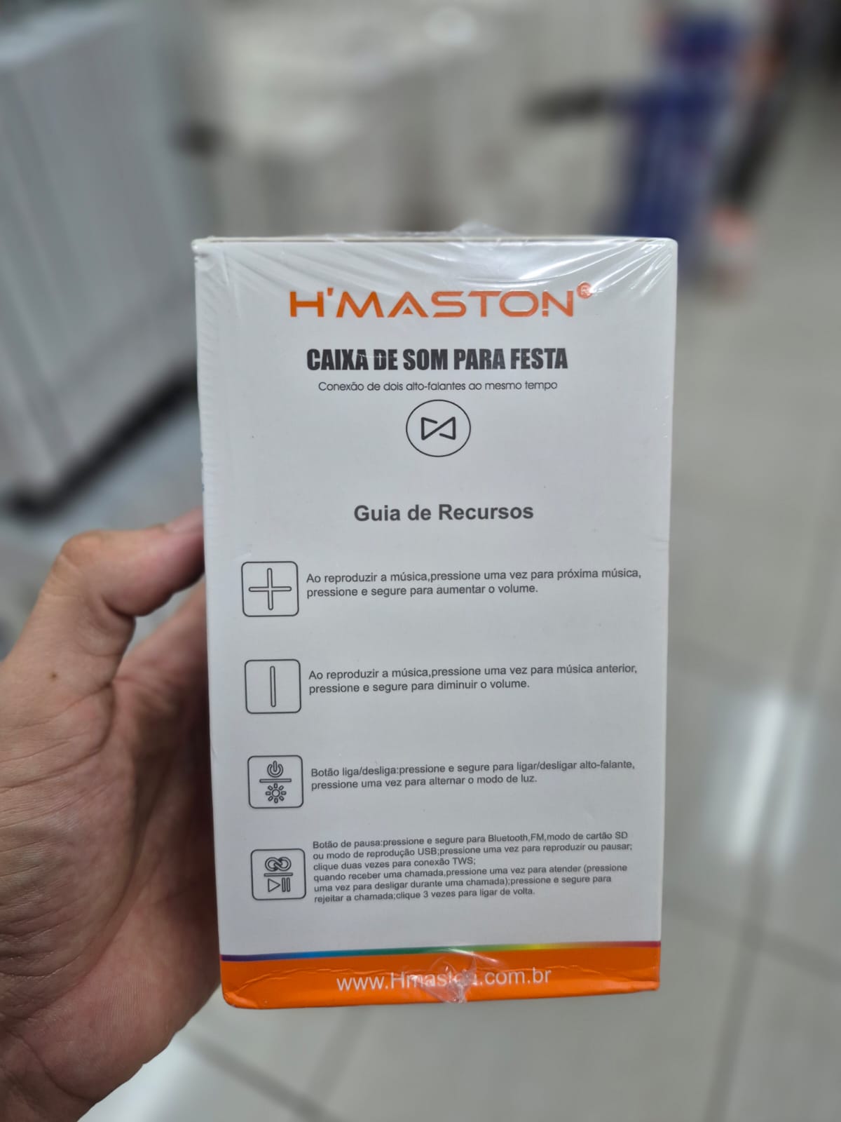 Fabricada com materiais de alta qualidade, esta caixa de som Bluetooth foi feita para durar. A bateria de longa duração garante horas de música ininterrupta, tornando-a a companheira ideal para qualquer ocasião.