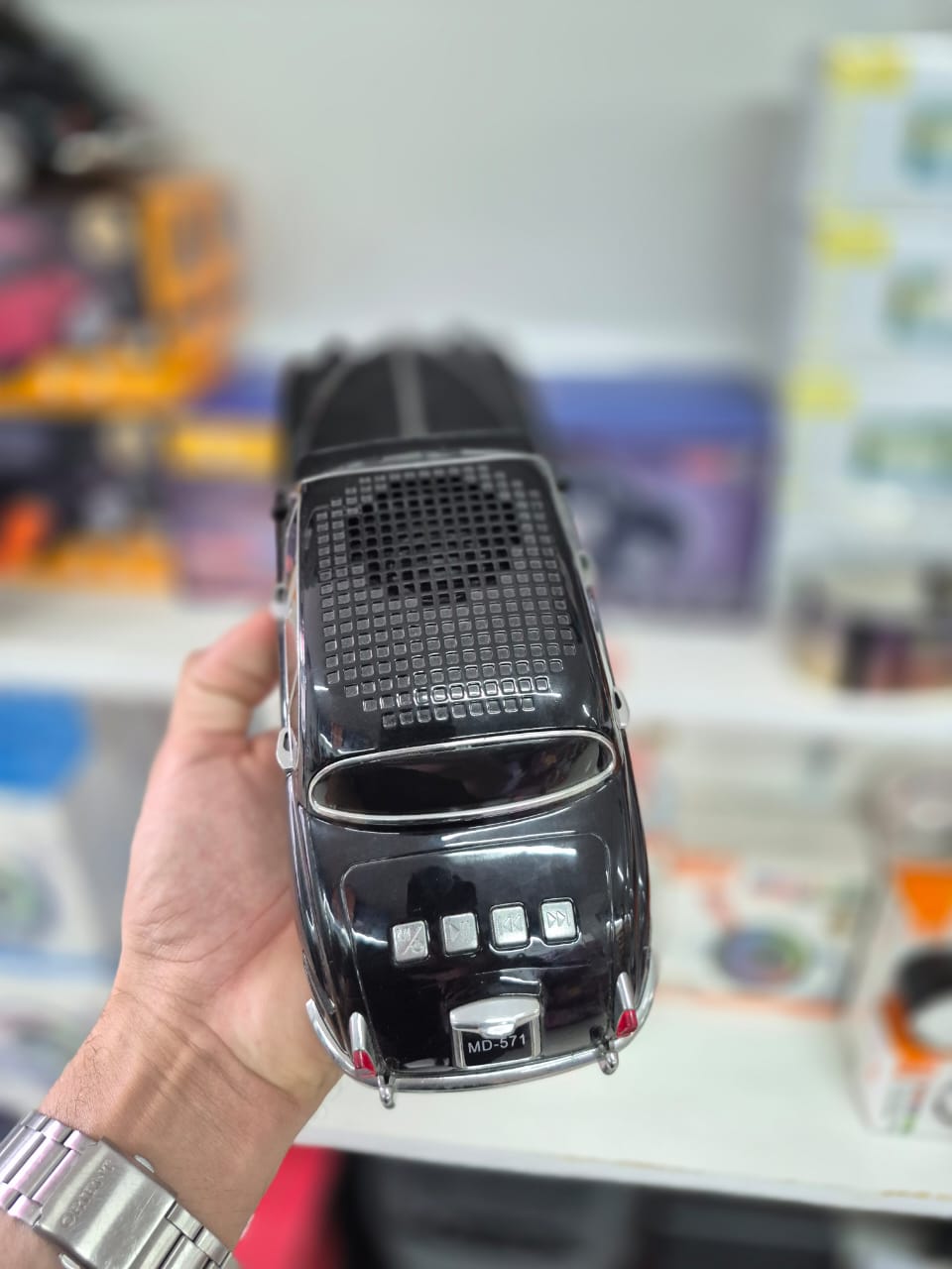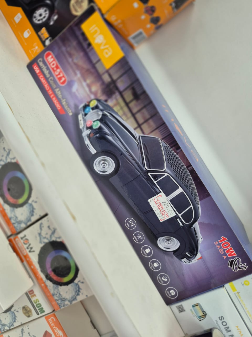 A Caixa de Som MD-571 combina tecnologia moderna com um estilo único. Com formato de carro, ela é um item decorativo além de funcional. Ideal para quem procura por exclusividade e personalidade em seus acessórios de áudio.