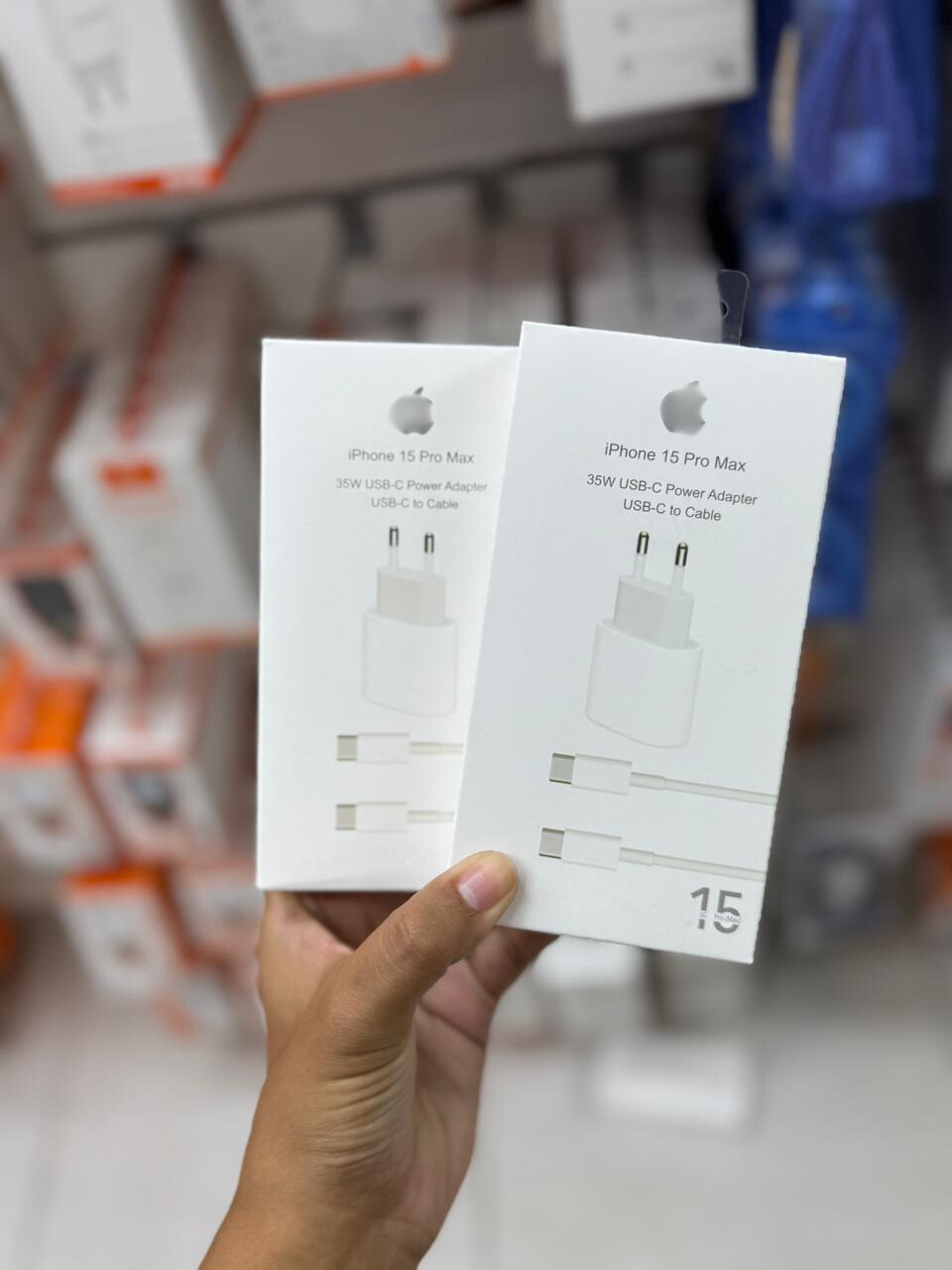 O adaptador de energia 35W USB-C é ideal para o iPhone 15 Pro Max, oferecendo carregamento rápido e eficiente via USB-C. Ele permite carregar o dispositivo com potência total, sendo seguro e compatível com a linha iPhone 15.