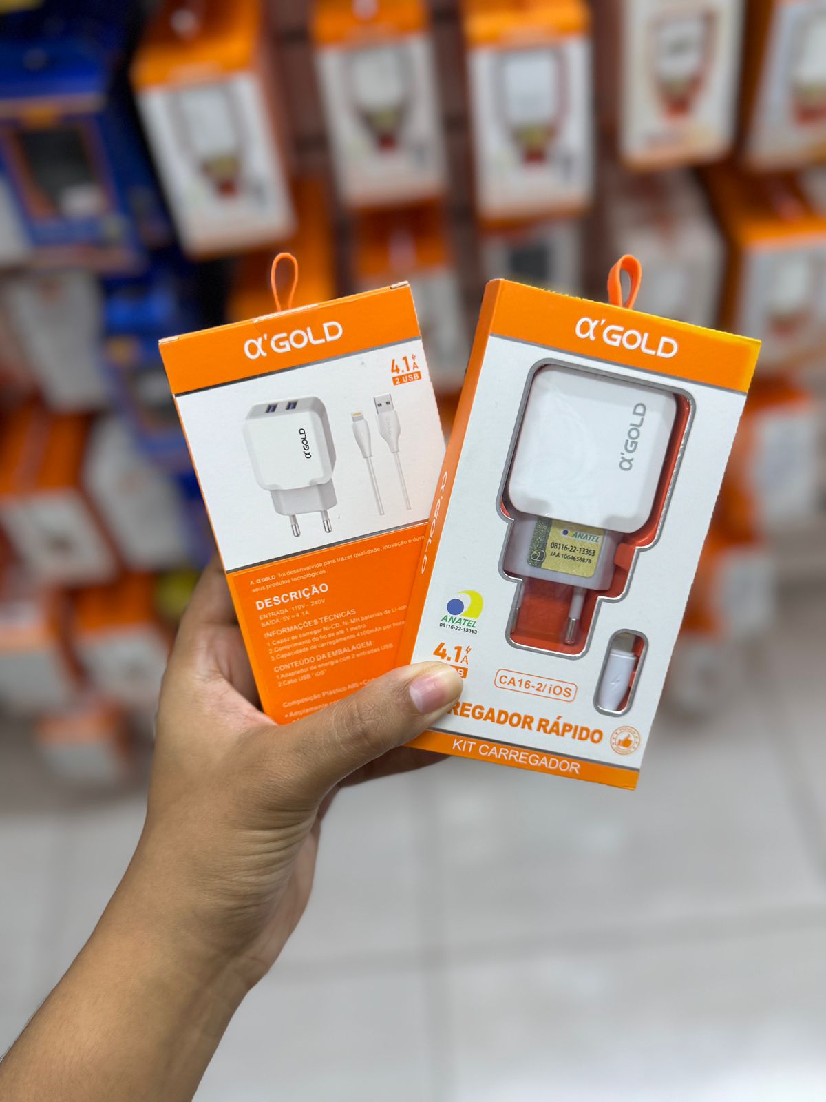 Com capacidade de 4.1A, oferece carregamento rápido, proteção contra sobrecarga e é ideal para dispositivos Apple, com cabo de 1 metro.