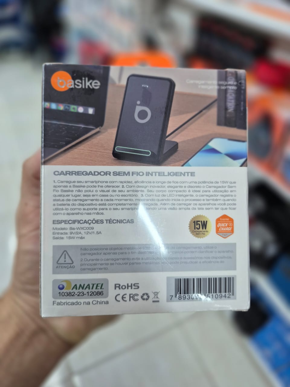 CARREGADOR INDUÇÃO BASIKE BA-WXC009
