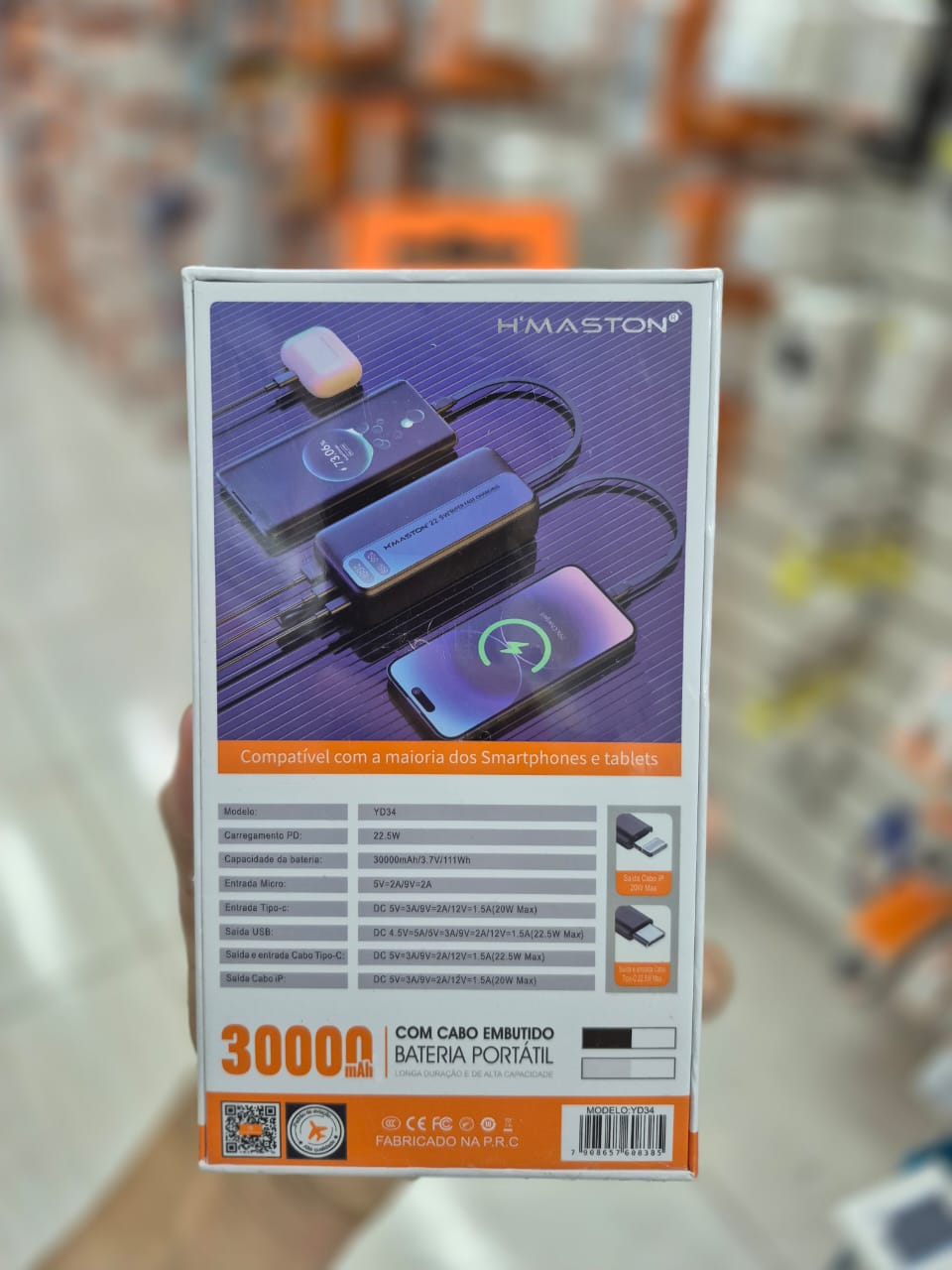 O CARREGADOR PORTÁTIL 30000MAH YD34 foi criado para acompanhar o ritmo do seu dia. Com a sua alta capacidade de 30000mAh, você nunca mais precisará se preocupar em ficar sem bateria, seja em casa, no trabalho ou na estrada.
