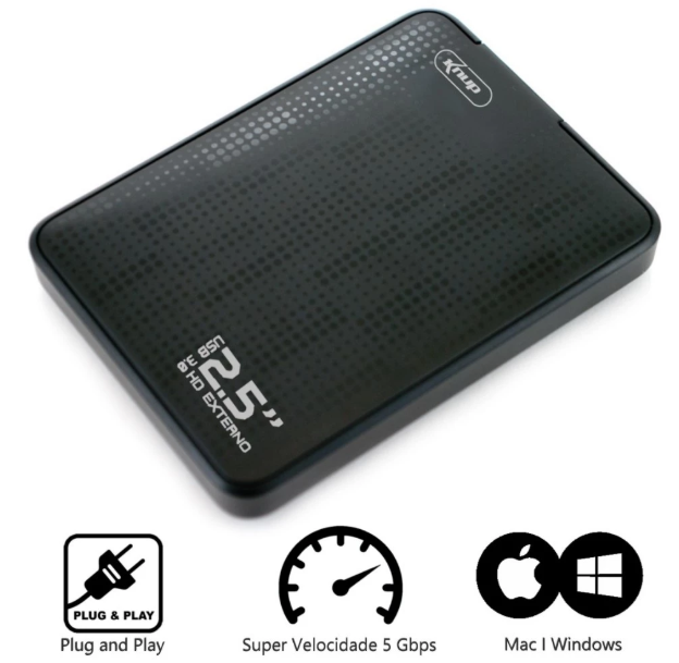 O HD Externo serve para você armazenar suas músicas, fotos, programas e até compartilhar arquivos de dados na rede. Alguns HDs externos tem a capacidade de armazenamento e velocidade maior que de um desktop normal.