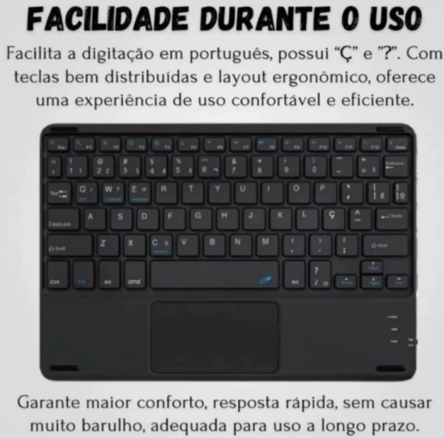 Facilitando cada toque em português, o JP105 é equipado com as essenciais teclas ‘Ç’ e ‘?’, tornando a digitação uma experiência fluida e eficiente. Seu layout ergonômico e teclas bem distribuídas garantem conforto e precisão em cada movimento.