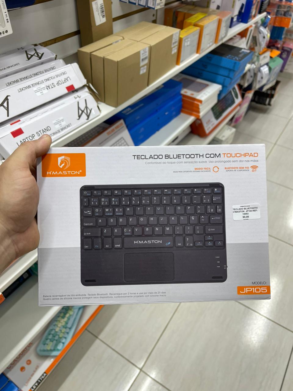 Desfrute de praticidade e versatilidade com o Teclado Bluetooth Touchpad JP105 da H’maston.